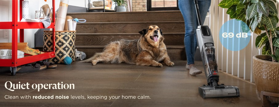 Cordless 2-in-1 cleaner that vacuums and washes sealed hard floors and refreshes area rugs, with a dedicated dry vacuum mode, two-tank technology, and a self-cleaning cycle for low-maintenance care.